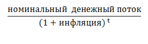 Формула, при помощи которой можно с легкостью рассчитать реальный денежный поток через определенный период времени t, имеющихся сегодня денег: