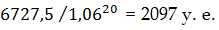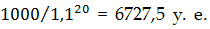 Значение инфляции подставляется в виде коэффициента. Например если предполагаемая инфляция составляет 8%, в формулу следует подставить 0.08. Посмотрим, что произойдет, если инвестировать 1000 у. е. на 20 лет по 10% годовых. Используя вышеприведенную формулу можно рассчитать, что через 20 лет вы будете обладать суммой равной: