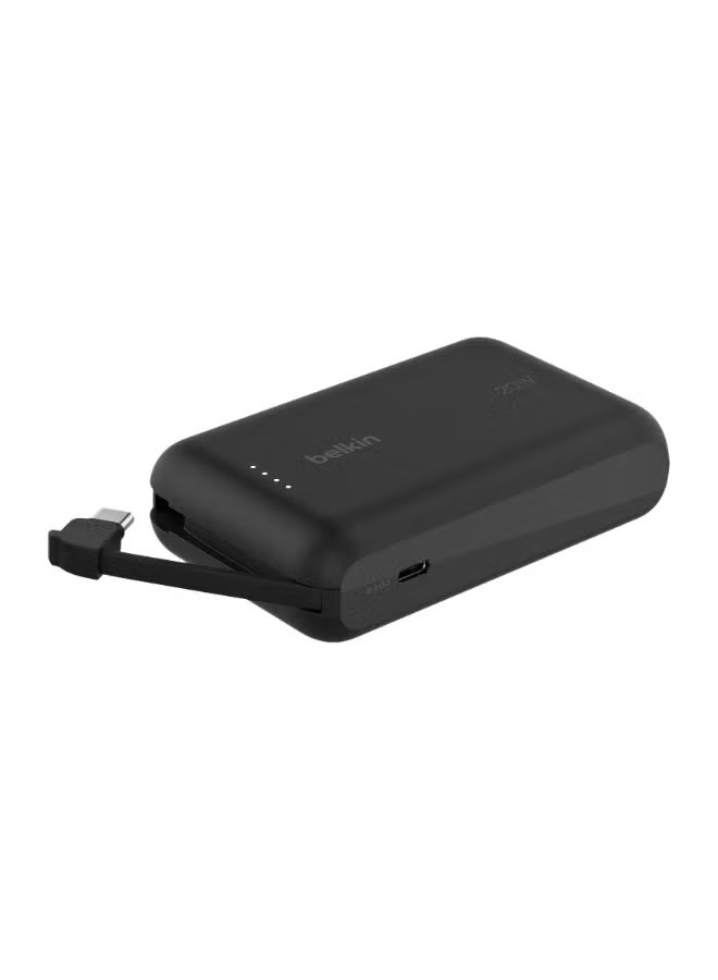 Внешний аккумулятор BoostCharge ёмкостью 10000 мА·ч, портативный, со встроенным кабелем, 10 тыс. PD, 20 Вт — быстрая зарядка через USB-C, быстрая зарядка iPhone 16/15 серии, iPad Pro, Galaxy S24 и других устройств — матово-чёрный