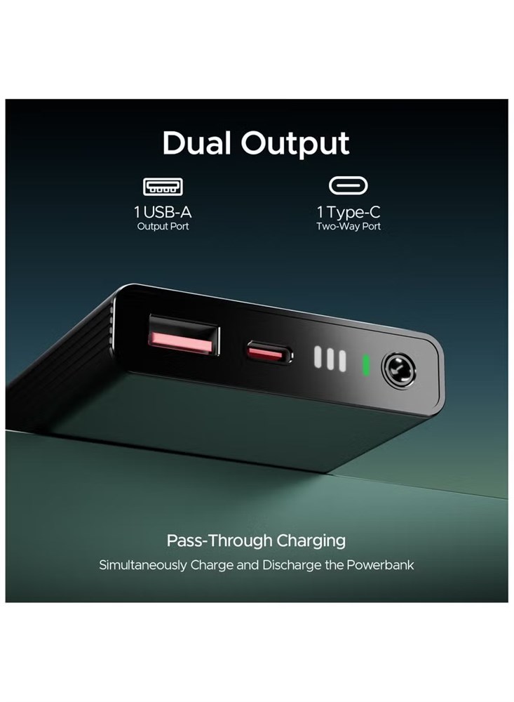 10000 мА·ч Energyshroom PB300 Pro | Компактный внешний аккумулятор карманного размера, вход USB Type-C (двусторонний порт), сквозная зарядка, совместимость с планшетами, смартфонами, наушниками и умными часами, цвет Carbon Black