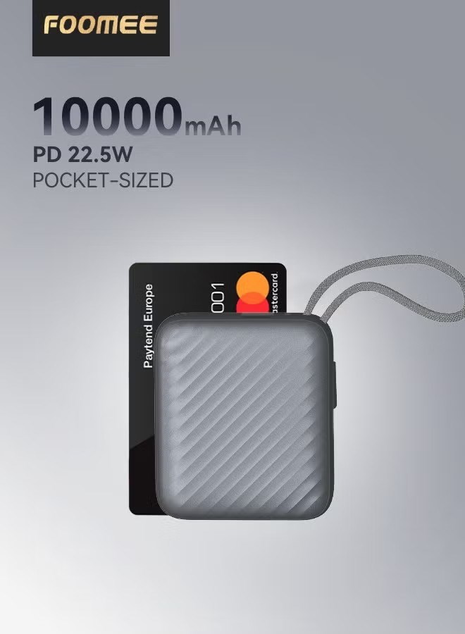 Мини-портативный аккумулятор емкостью 10000 мА·ч, быстрая зарядка 22,5 Вт, встроенный кабель USB-C и Lightning, двусторонняя зарядка с помощью встроенного кабеля USB-C, один порт USB-C, интеллектуальный цифровой дисплей, внешний аккумулятор для iPhone сер