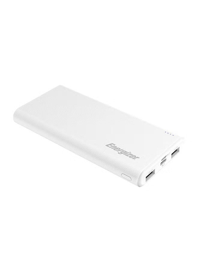 Внешний аккумулятор ёмкостью 10000 мА·ч с функцией быстрой зарядки, двумя выходами USB-A и Type-C, входами Micro USB, тонкий, компактный, с системой управления PowerSafe, белый