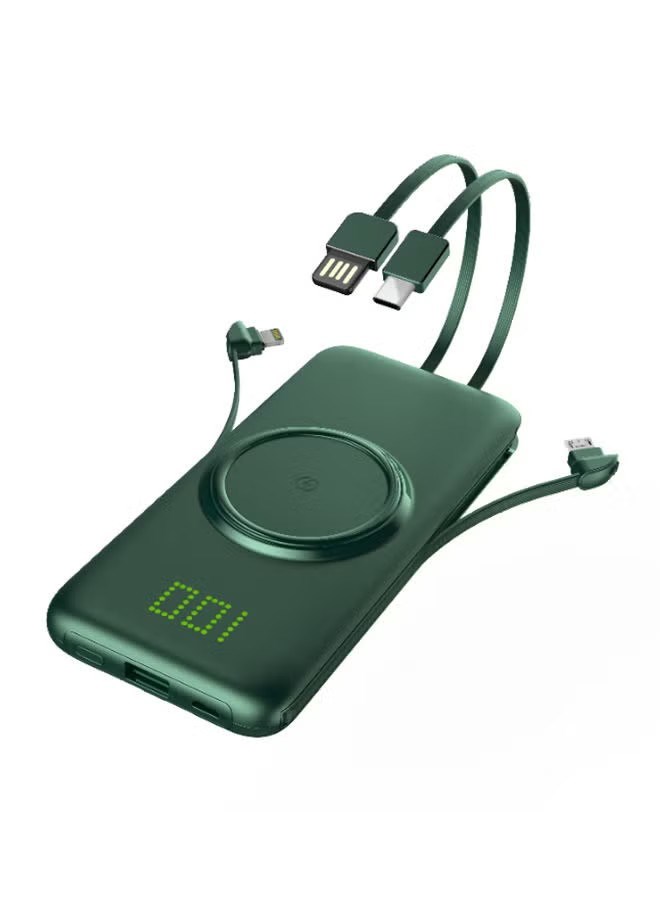 Беспроводной внешний аккумулятор емкостью 10000 мАч, мощностью 12 Вт, совместимый с iPhone/iPad/Samsung Galaxy и другими смарт-устройствами, зеленый с доставкой по всему Таджикистану: Душанбе, Худжанд, Бохтар и все районы в том числе.