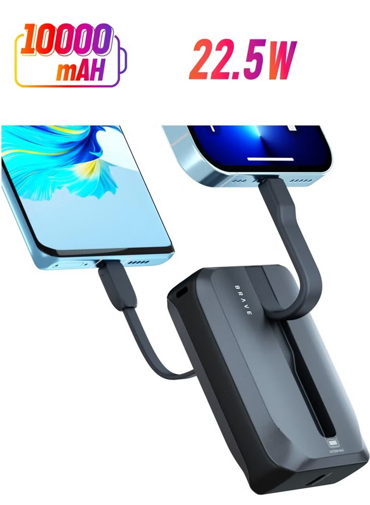 Внешний аккумулятор ёмкостью 10000 мА·ч — быстрая зарядка 22,5 Вт со встроенными кабелями Type-C и Lightning, зарядное устройство PD, технология QC 3.0, тонкий и портативный внешний аккумулятор, быстрое зарядное устройство, совместимое с iPhone Air, iPhon