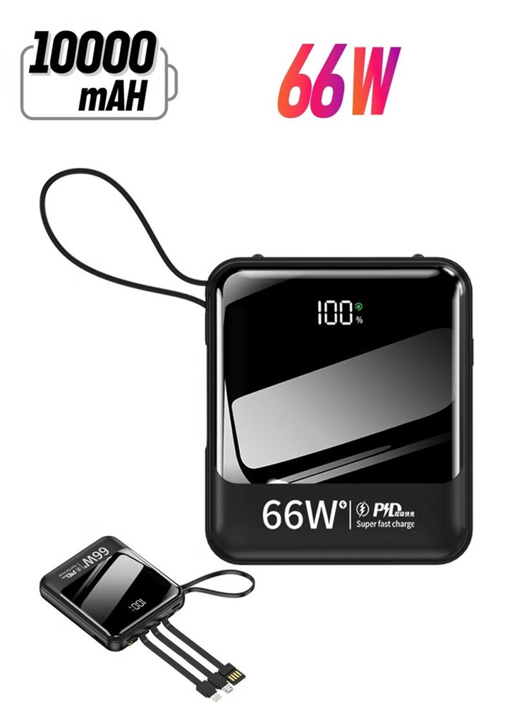Внешний аккумулятор емкостью 10000 мАч, мощностью 66 Вт, сверхбыстрая зарядка, в комплекте 4 кабеля, совместим с Samsung Galaxy S23/S22/S21/S20/S10, iPhone 14/iPhone 13/iPhone 12 серии/iPad с доставкой по всему Таджикистану: Душанбе, Худжанд, Бохтар и все районы в том числе.