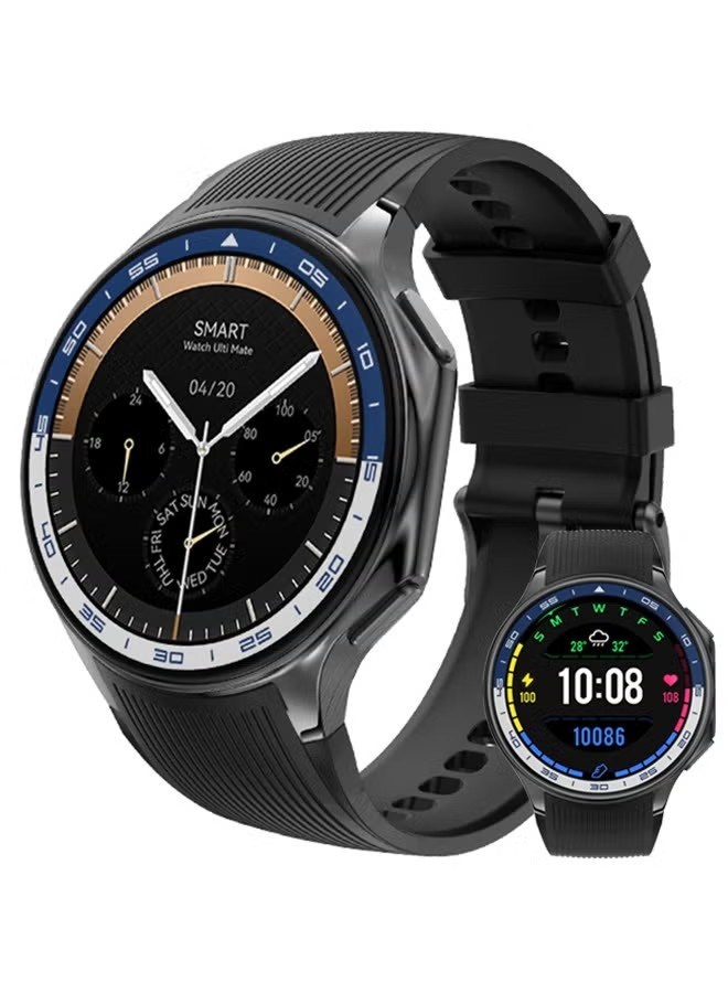 Смарт-часы 1,43 дюйма для мужчин и женщин, многофункциональные спортивные фитнес-часы с монитором уровня кислорода в крови, пульсометром, водонепроницаемые, IP68, черный силикон