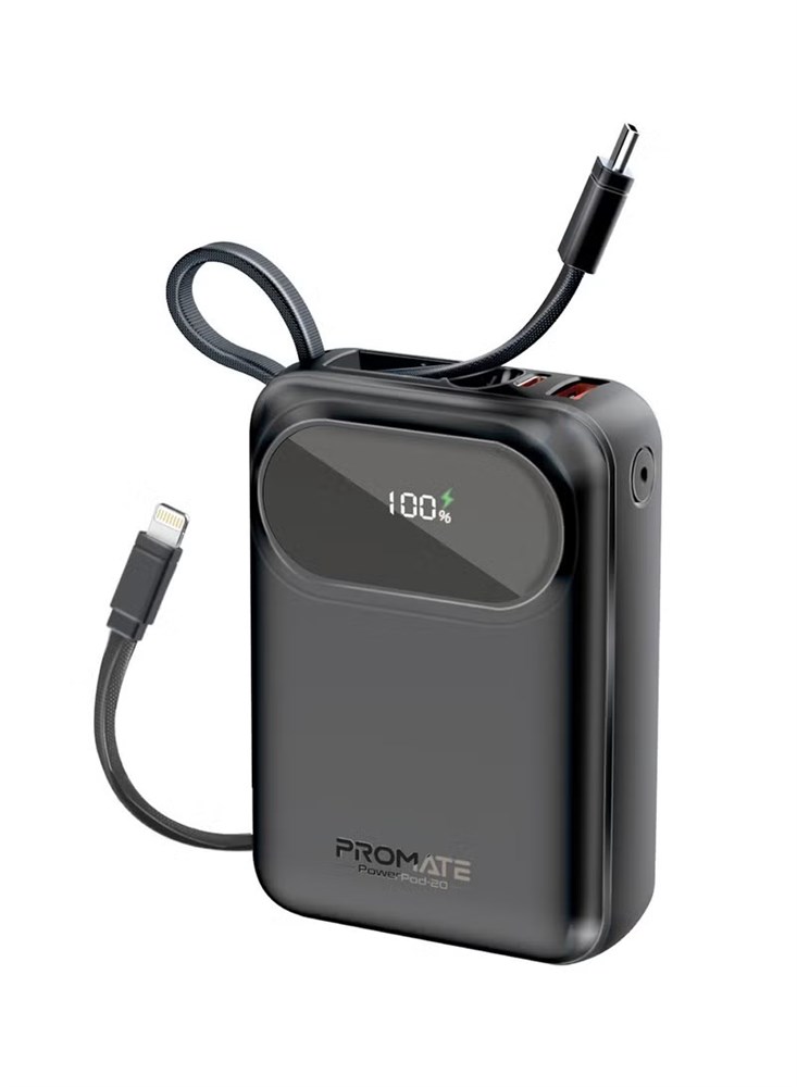 Внешний аккумулятор ёмкостью 20000 мА·ч, универсальное сверхкомпактное портативное зарядное устройство, кабели Lightning мощностью 27 Вт, встроенный порт USB-C мощностью 35 Вт, порт USB-A QC 3.0 мощностью 22,5 Вт для iPhone 16, Galaxy S25, Powerpod-20 (чёрный) с доставкой по всему Таджикистану: Душанбе, Худжанд, Бохтар и все районы в том числе.