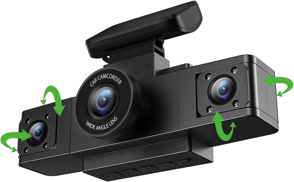 3-канальный видеорегистратор, 1080p спереди и внутри слева/справа, бесплатная карта памяти 32 ГБ, циклическая запись, три камеры для автомобилей, круглосуточный мониторинг парковки, широкоугольный объектив, ИК-ночное видение, G-сенсор