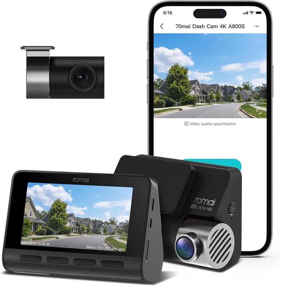 Видеорегистратор 70mai A800S-1 4K с камерой спереди и сзади, STARVIS, встроенной камерой с Wi-Fi 5 ГГц и GPS, улучшенным ночным видением, ADAS, 3-дюймовым IPS-экраном, круглосуточным режимом парковки, покадровой съемкой, циклической записью, поддержкой до 256 ГБ доставим до вашей двери по всему Таджикистану.