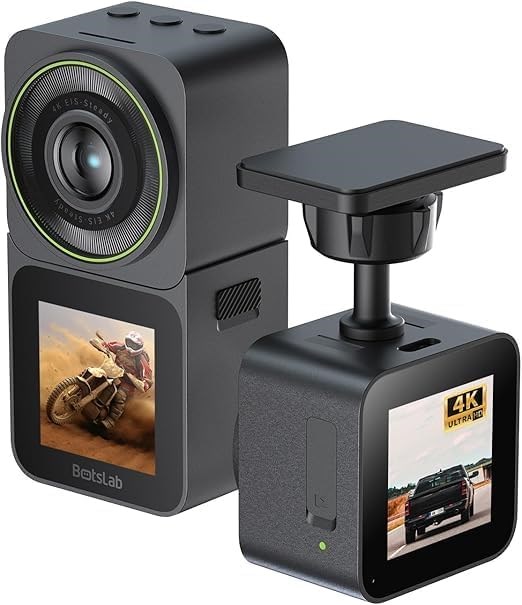 Автомобильный видеорегистратор Botslab 4K 20 МП, двойное назначение: экшн-камера и видеорегистратор, водонепроницаемый, стабилизация EIS, широкоугольная камера на шлеме 170° для видеоблога или записи автомобильных путешествий