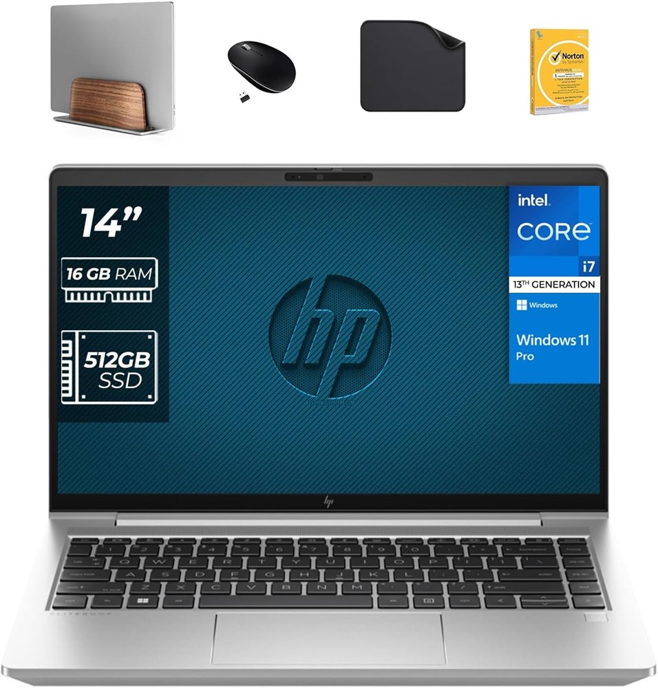 HP ELITEBOOK 640 G10 13-го поколения Core i7-1335U, 14-дюймовый дисплей, 16 ГБ ОЗУ, SSD-накопитель на 512 ГБ, Windows 10 Pro, камера FHD 720p (в комплекте вертикальная подставка для ноутбука + беспроводная мышь + антивирус + коврик для мыши)
