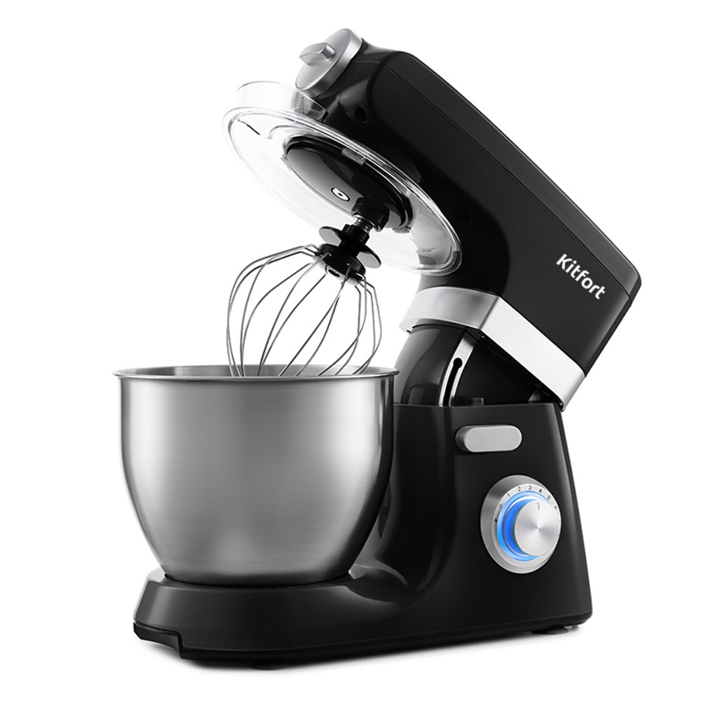 Планетарный миксер Kitfort КТ-1348-3, чёрный, ёмкость чаши 7 л, 3 насадки, 1200 Вт