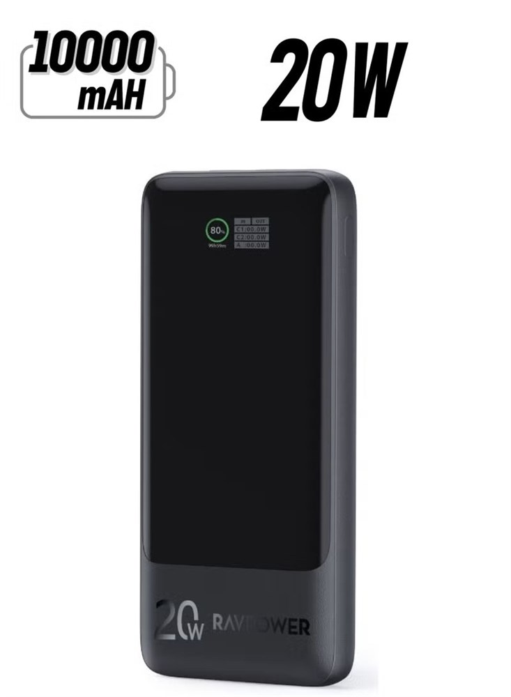 Портативное зарядное устройство, внешний аккумулятор PD QC мощностью 20 Вт с 3 портами, аккумулятор USB C с интеллектуальным цифровым дисплеем, компактный внешний аккумулятор для iPhone, Samsung и других устройств, черный цвет