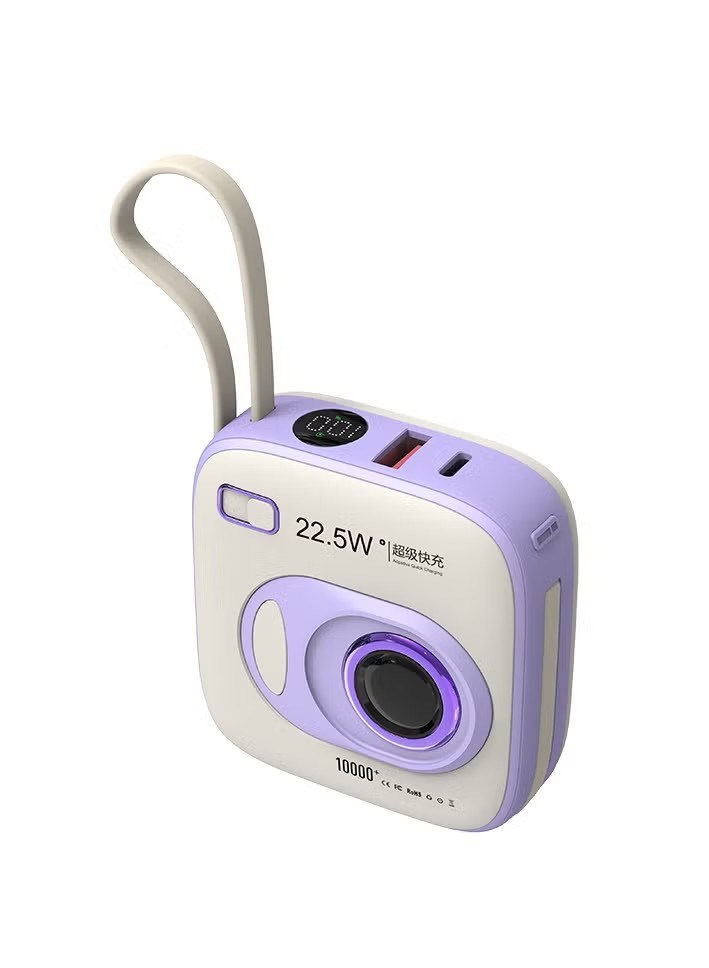 Внешний аккумулятор 10000 мА·ч с функцией быстрой зарядки — портативное зарядное устройство со светодиодным дисплеем и двумя встроенными кабелями (Type-C/Lightning), мини-аккумулятор мощностью 22,5 Вт для iPhone/Android (карманного размера)