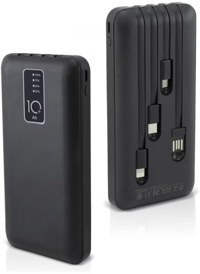 Портативное зарядное устройство Power Bank 20 000 мА·ч — внешний аккумулятор высокой емкости с 4 встроенными USB-кабелями, быстрая зарядка, компактный дизайн, совместимость со смартфонами, планшетами и USB-устройствами