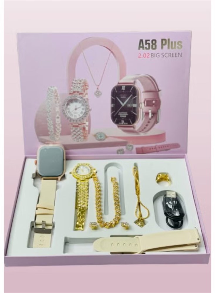 Умные часы Smart Watch 10 с большим экраном 2.02, стильные женские часы с браслетом и комплектом украшений без ожерелья, кольцо с 2 ремешками