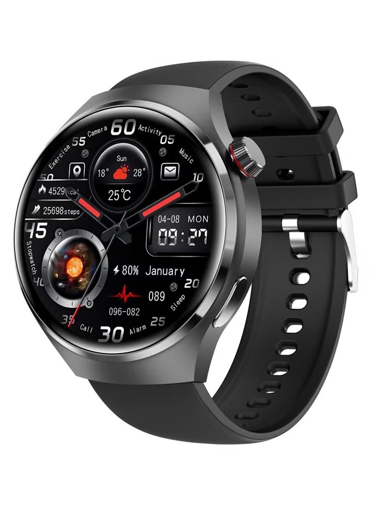 Умные часы GT4 PRO с функцией Bluetooth-вызовов (принимать/совершать звонки), фитнес-трекер с функцией мониторинга сна, совместимые с iPhone/Android, водонепроницаемость IP68 (полночный черный)