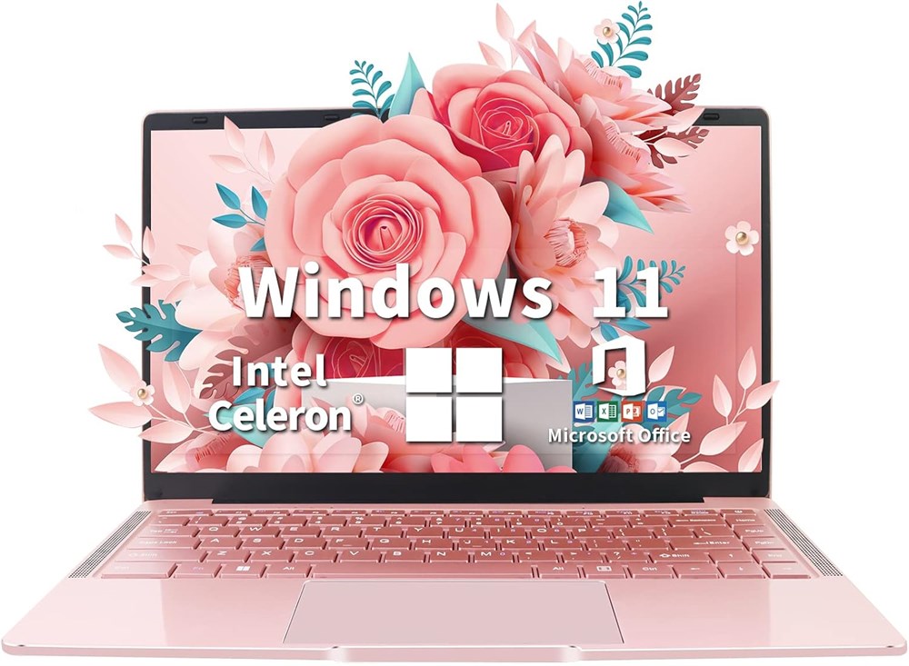 Ноутбук UDKED 14 дюймов, 6 ГБ ОЗУ, SSD, ультрабук на базе Windows 11, разрешение 1920 x 1080 пикселей, процессор Intel Celeron J4105 (до 2,5 ГГц), двойной Wi-Fi, 2 порта USB 3.0 (розовое золото, SSD на 128 ГБ)