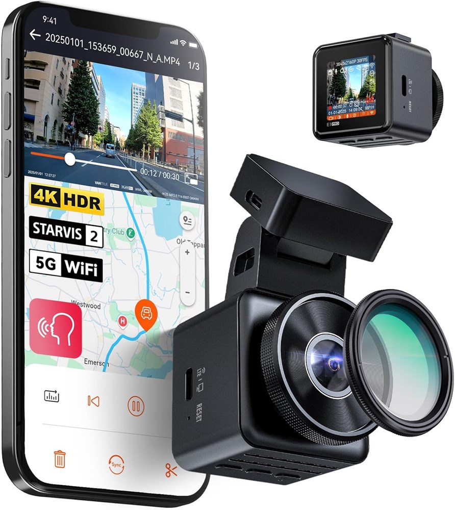 Мини-видеорегистратор Vantrue E1 Pro 4K, камера ночного видения STARVIS 2 PlatePix™ HDR, встроенный 5G WiFi GPS, экран IPS 1,54 дюйма, поддержка LTE, голосовое управление, режим круглосуточной буферизации парковки, поддержка до 1 ТБ