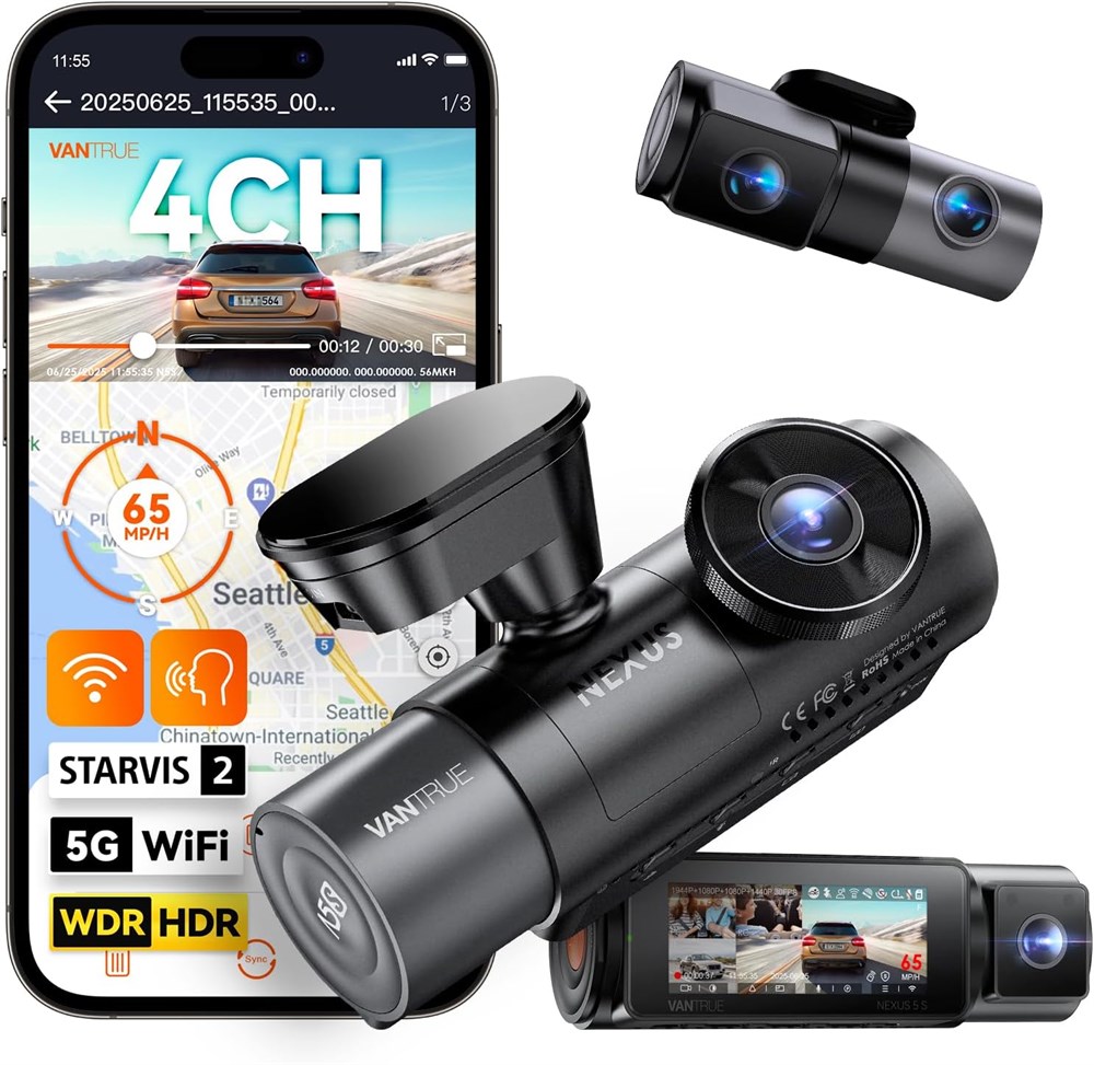 4-канальный видеорегистратор Vantrue N5S с обзором 360 градусов, Wi-Fi, STARVIS 2, ИК-подсветка ночного видения, камера 2.7K+1080P*2+1440P, встроенная камера спереди и сзади, голосовое управление, GPS, поддержка OTA, режим парковки 24 часа, поддержка до 1 ТБ доставим до вашей двери по всему Таджикистану.
