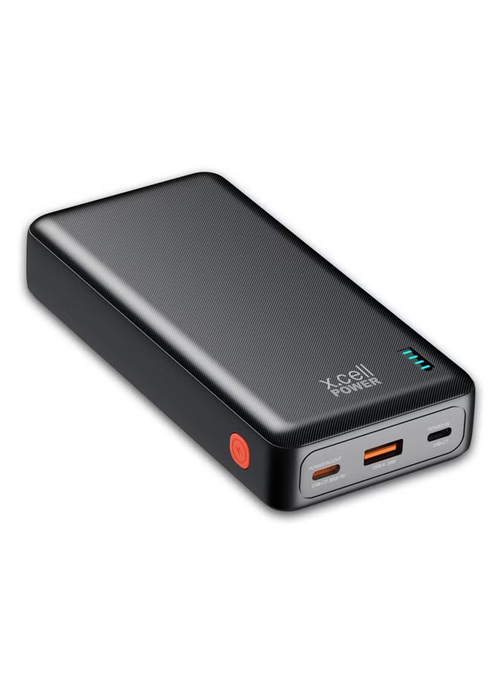 Внешний аккумулятор Xcell 20 000 мА·ч | USB-C PD 20 Вт + USB-A 18 Вт | Двойной вход для зарядки | Портативная зарядная станция высокой ёмкости | Совместимость с iPhone, MacBook Air, Samsung Galaxy, iPad Pro | 72 часа работы — чёрный