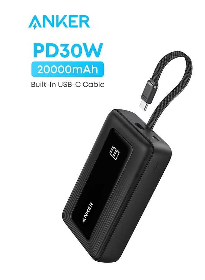 Zolo Power Bank, портативное зарядное устройство с высокой скоростью 20 000 мА·ч и мощностью 30 Вт со встроенным кабелем USB-C, аккумулятор для iPhone 17/17 Air/17 Pro/17 Pro Max/16 Series, Galaxy и других устройств (черный, 20 000 мА·ч)